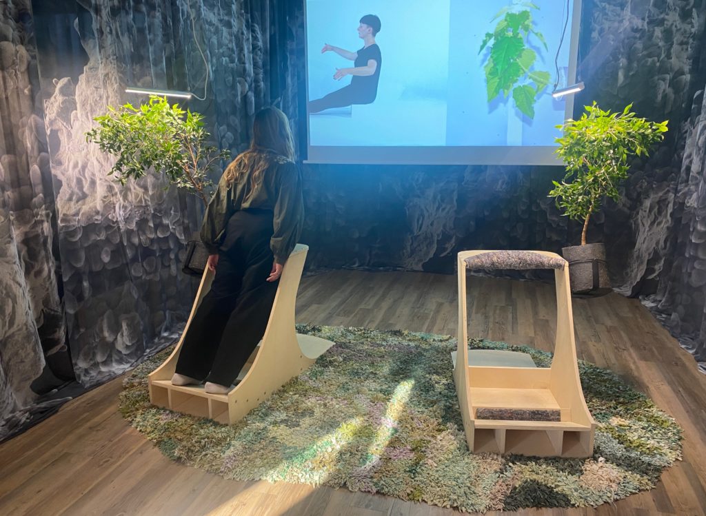 Is it possible to straighten up like a plant, by activating our perceptions of gravity and the limits of the body? Vertimus is a human-plant duo, a dance synchronised to the tempo of a poplar straightening. The spectator is invited to move their body, experiencing transformed gravity while watching a film from inclined seats. On a specially designed carpet, plants accompany this straightening. The aim is to physically experience, for a moment, the plant’s perception of time by engaging one’s inner ear.