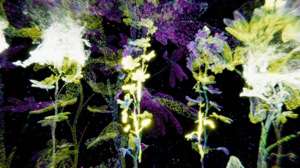 Felipe Castelblanco’s Plant Movements explores how plants communicate knowledge through medicine and agroecological models in the Andean-Amazon, where vegetal and human communities form alliances to sustain life and resist ecological threats. Julia Mensch’s Amaranth as Political Agent examines Argentina’s transgenic agriculture as a continuation of colonial terricide, highlighting Amaranth’s ecological agency as both a challenge to GM crops and a form of vegetal resistance. Rasa Smite’s Flower as Antenna and Attractor includes collaborations with Swiss breeding scientists at the Research Institute of Organic Agriculture (FiBL) and explores how flowering plants sense and interpret light, resulting in a VR visualization created together with Raitis Smits.